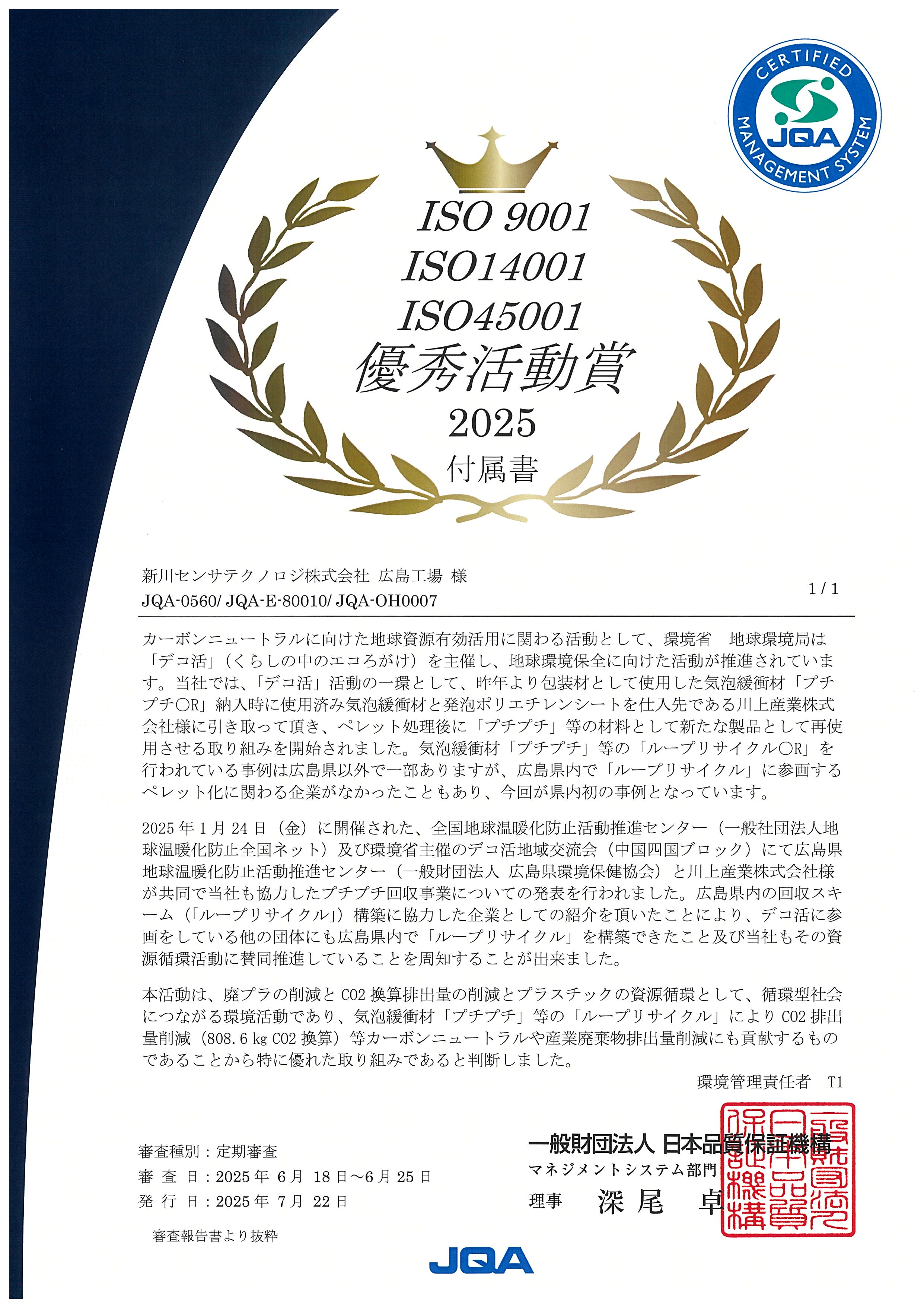 また、本活動が評価され、一般財団法人日本品質保証機構様より、『優秀活動賞証書』を受賞いたしました。